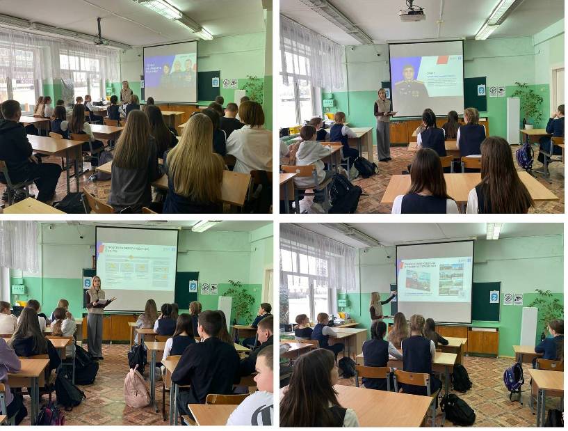 Отдельная часть лекции была посвящена понятиям героизма и подвига. На примере героев — участников Специальной военной операции — учащимся рассказали о мужестве, самоотверженности и преданности Родине, которые проявляют российские военнослужащие при выполнении своего долга.